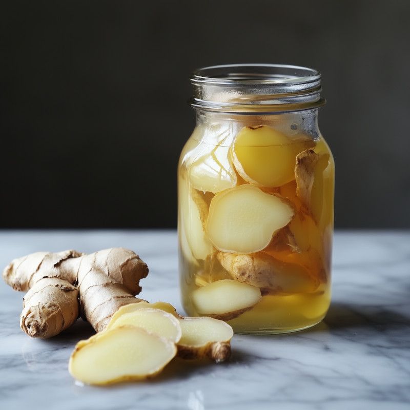 - Versez dans le bocal le vinaigre sucré refroidi jusqu'à couverture du gingembre.
